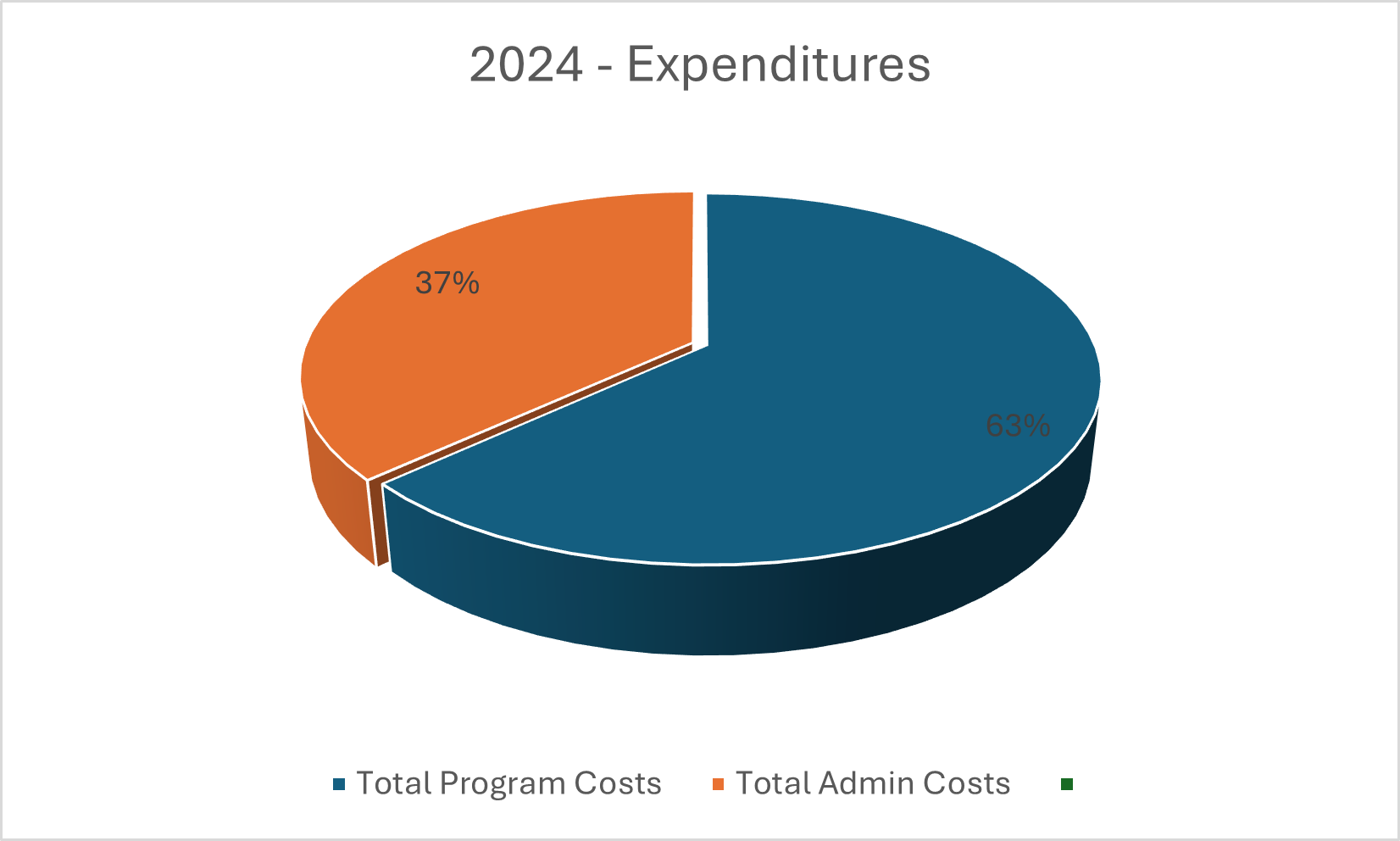 The majority of our funding (63%) directly supported program implementation, including leadership development initiatives, governance training, and economic empowerment activities.